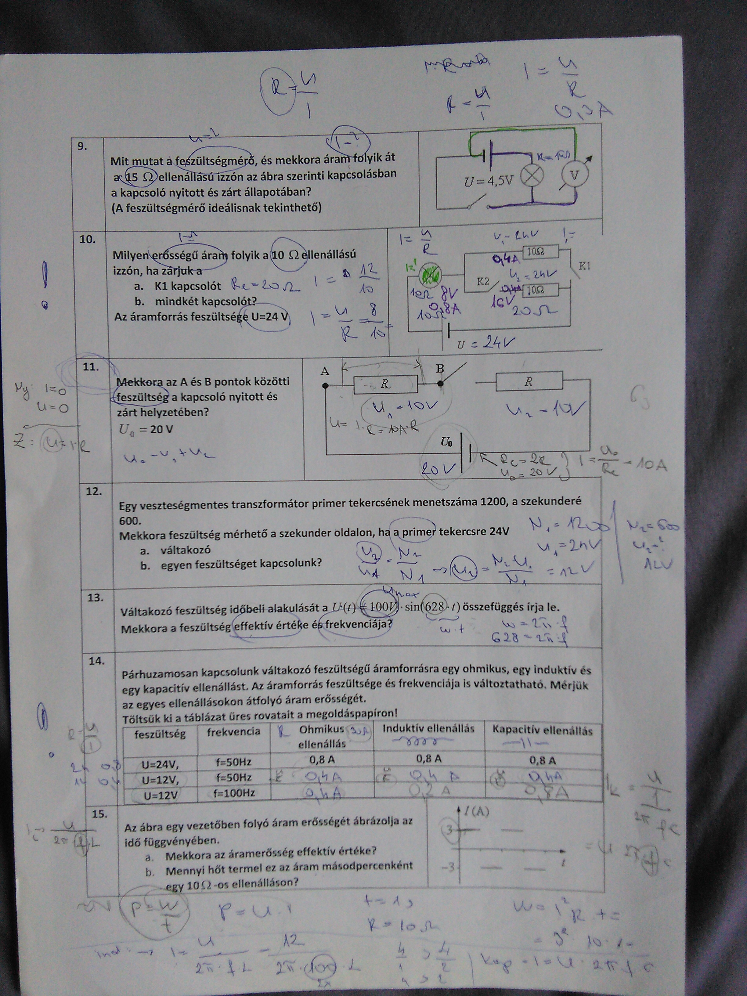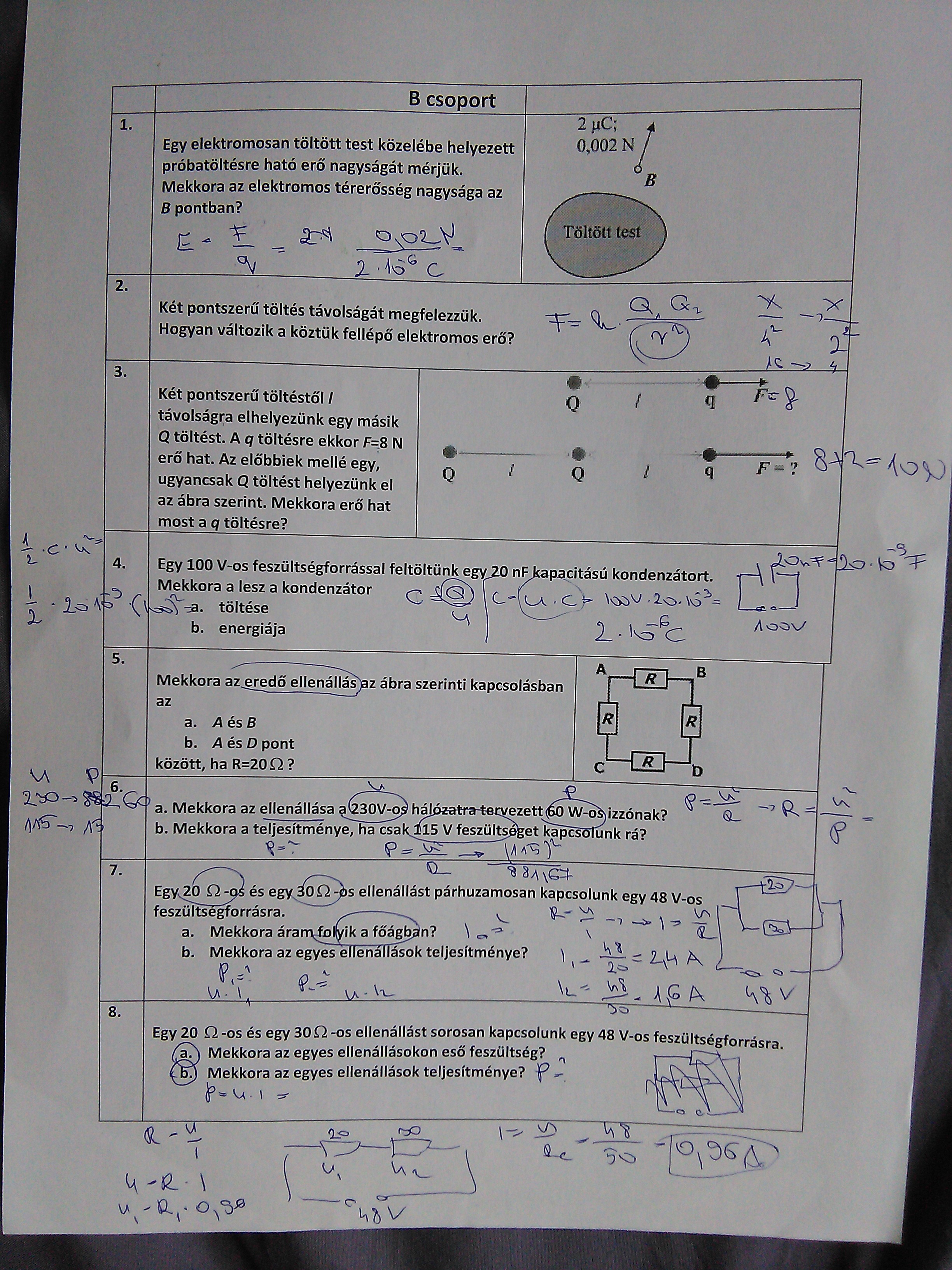 bevFiz évközi 2. zh (elektrosztatika, váltóáram...)