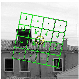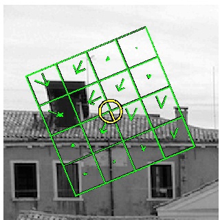 By comparison, D. Lowe's implementation (see bottom half of the figure) uses a slightly different convention: Frame centers are expressed relatively to the standard image reference system, but the frame orientation and the descriptor assume that the y axis points upward. Consequently, to map from our to D. Lowe's convention, frames orientations need to be negated and the descriptor elements must be re-arranged.