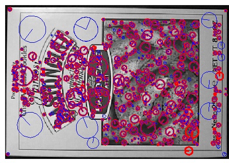 figure compares SIFT keypoints computed by the VLFeat (blue) and UBC