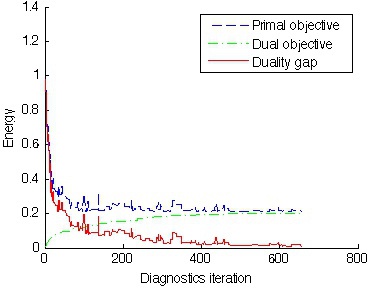 energy = [energy [svm.objective ; svm.dualObjective ; svm.dualityGap ] ] ;