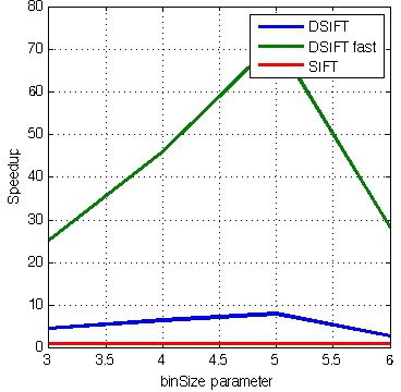 vl_sift. Right: speedup. The fast version is less similar