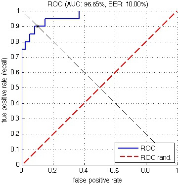 diagonal of the unit square. Both AUC and EER can be computed